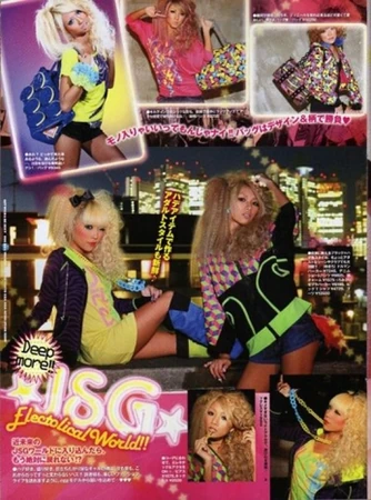 The style combines Gyaru makeup and culture with American and British rock and hip-hop styles, along with popular fashion and makeup styles from the 1980s.